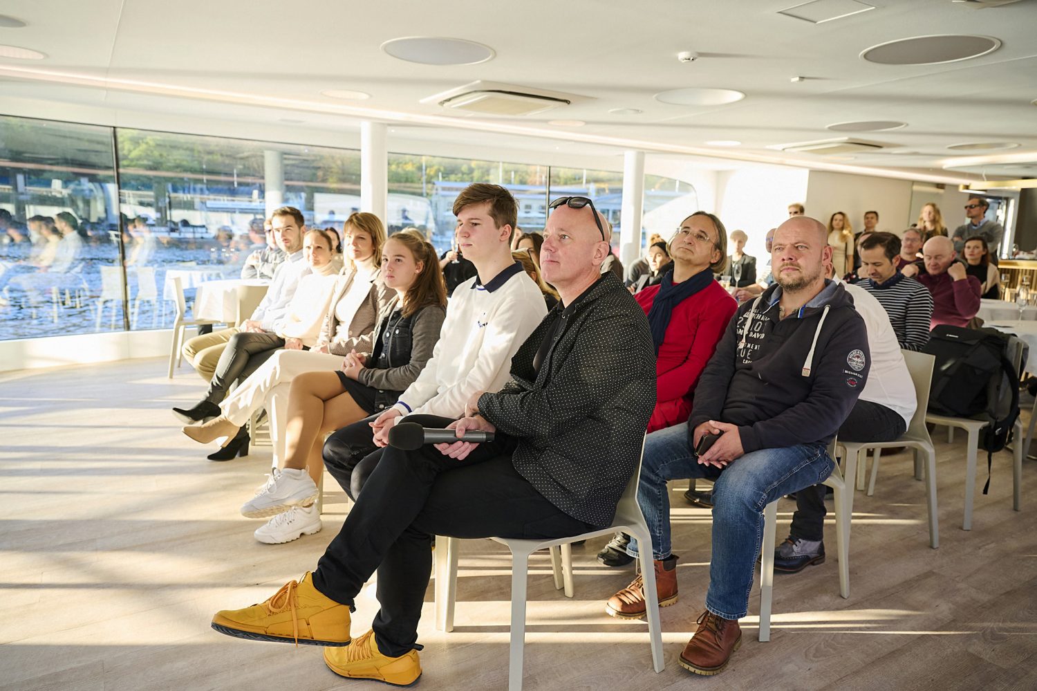 Program odstartovala plavba s architektem, designérem a profesorem Jiřím Pelclem, který nám představil svůj koncept materiality na portfoliu svých prací, a to napříč nejrůznějšími tématy. Jiří Pelcl přednáší na Vysoké škole uměleckoprůmyslové v Praze a jeho díla jsou vystavena nejen v Uměleckoprůmyslovém museu v Praze, ale i ve Vídni, Bratislavě a v New Yorku.
